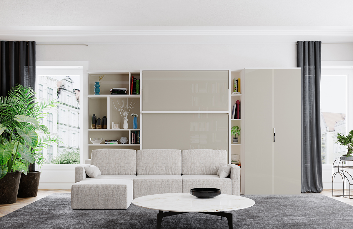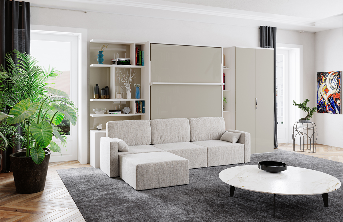 Standart bir yatağın ve salonun sağladığı tüm özellikleri sağlayan “Royal Set”in lüks çift kişilik katlanır duvar yatağı sayesinde, uyku zamanlarında standart yatakların sunduğu genişlikte konforlu şekilde uyuyabilir; uyku zamanları dışında ise yatağınızı kapalı konuma getirerek koltuk fonksiyonundan yararlanabilirsiniz.